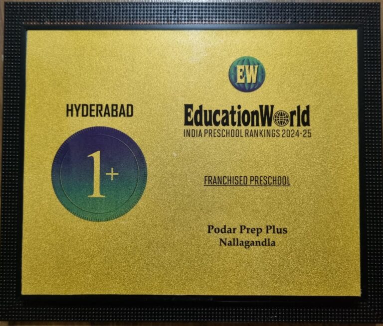 We are thrilled to announce that Podar Prep, Nallagandla, has been ranked as Hyderabad’s #1+ Franchised Preschool forthe Academic Year 2024-25!